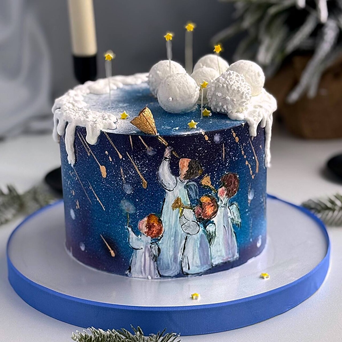 В уроках я показываю как повторять такие торты, если клиент пришел к Вам с картинкой торта, которую составил ему искусственный интеллект